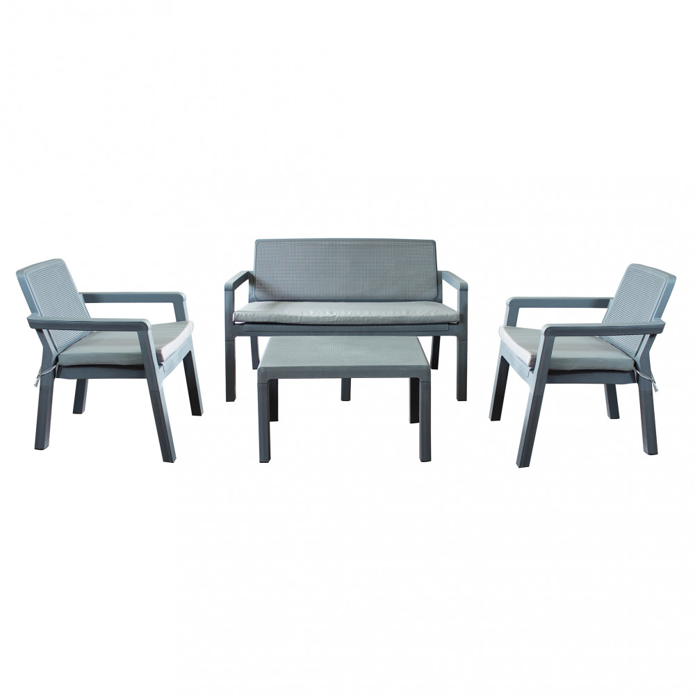 salotto in polipropilene nero o grigio o bianco cuscini grigi salotto nero cuscini beige Dimensioni: Divano: cm 122,5 x 63 x 75 h;
