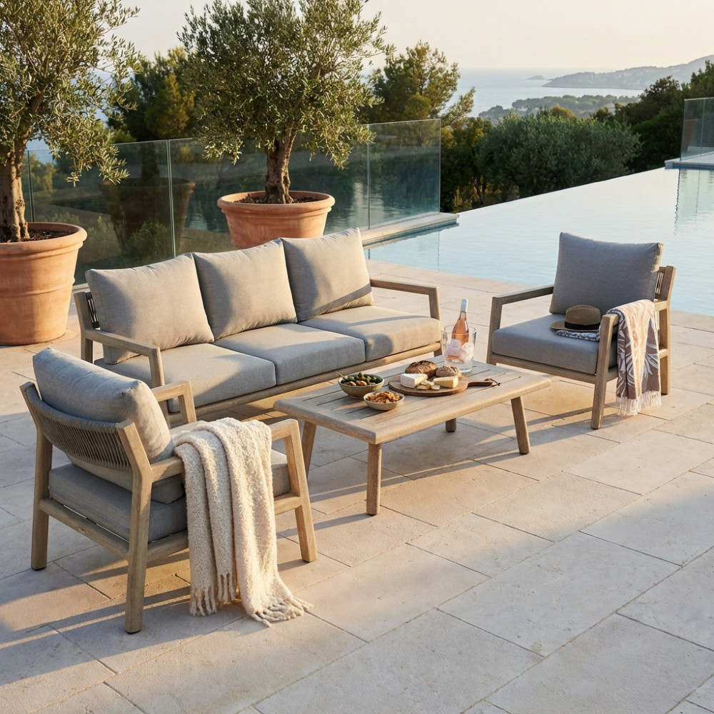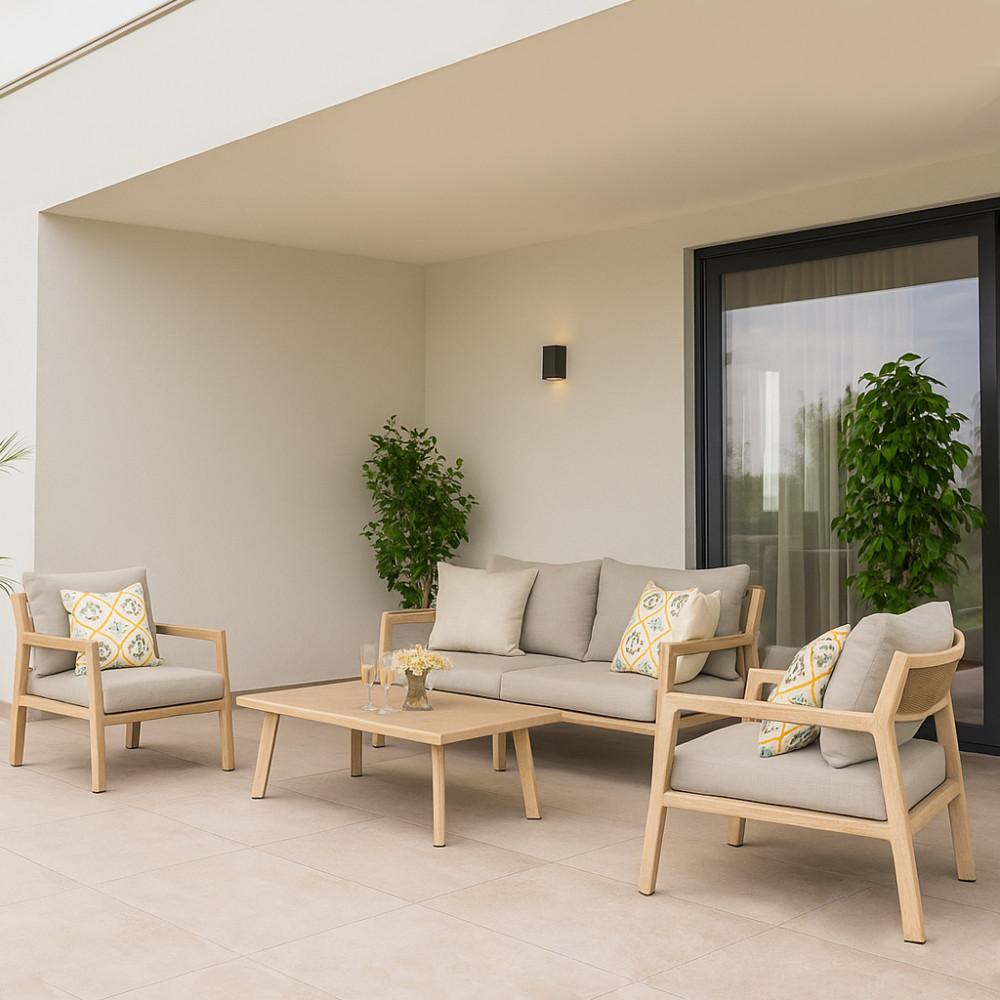 struttura in alluminio verniciato naturale con cuscini Dimensioni: Poltrona: cm 88x88x71,5