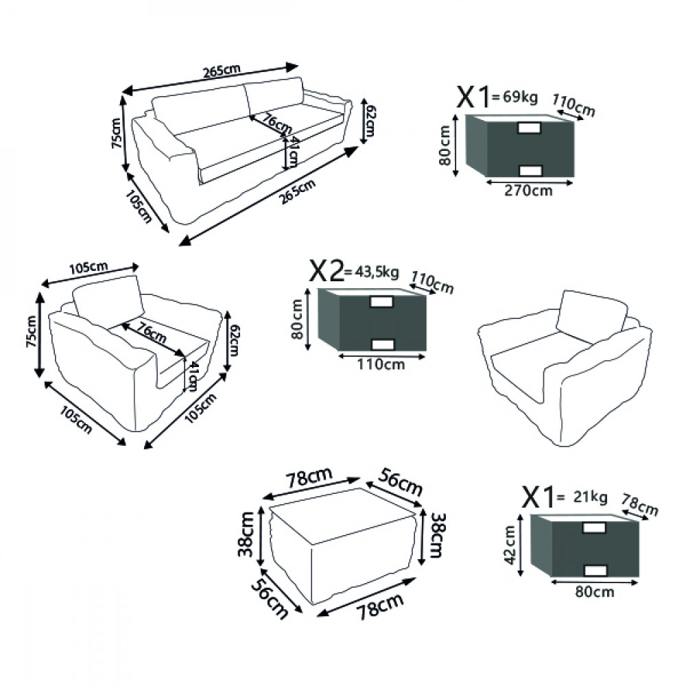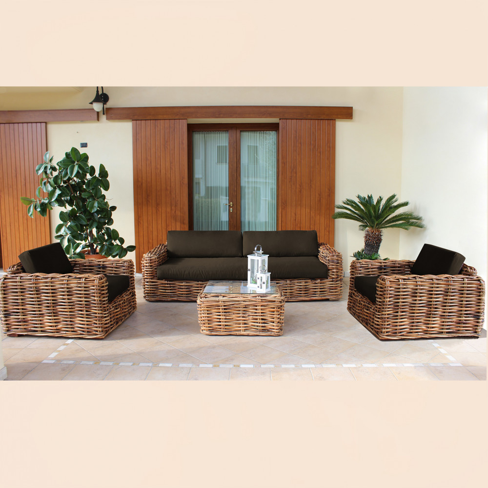 Struttura in legno, big rattan naturale Dimensioni: D.75x194x105/P.75x105x105/T.38x78x56