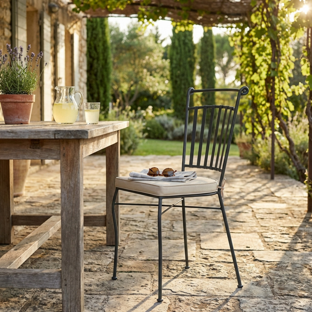 sedia in ferro verniciato a polvere antracite cuscino ecru Dimensioni: cm 43 l x 51 p x 90 h