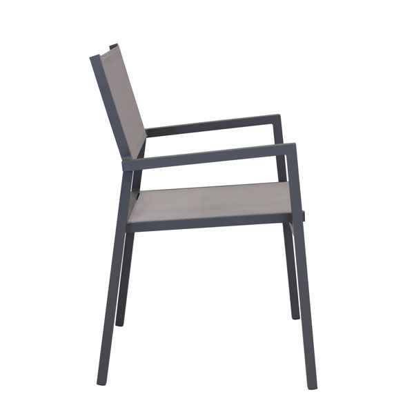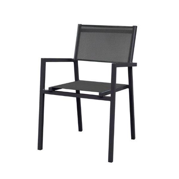 Questa tipologia di sedie con braccioli ( o poltrona giardino) da esterno presenta un design essenziale e molto semplice, con seduta e schienale in textilene. Inoltre, è adattabile a tantissimi contesti, ambienti e spazi , nonché adattabile a qualsiasi tipologia di tavolo (sia tavoli in policarbonato, che tavoli in legno o tavoli in alluminio).