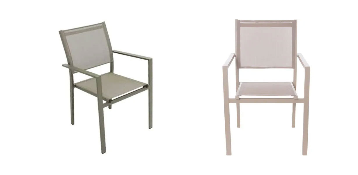 Questa tipologia di sedie da esterno presenta un design essenziale e molto semplice, con seduta e schienale in texitilene. Inoltre, è adattabile a tantissimi contesti, ambienti e spazi , nonché adattabile a qualsiasi tipologia di tavolo (sia tavoli in policarbonato, che tavoli in legno o tavoli in alluminio).