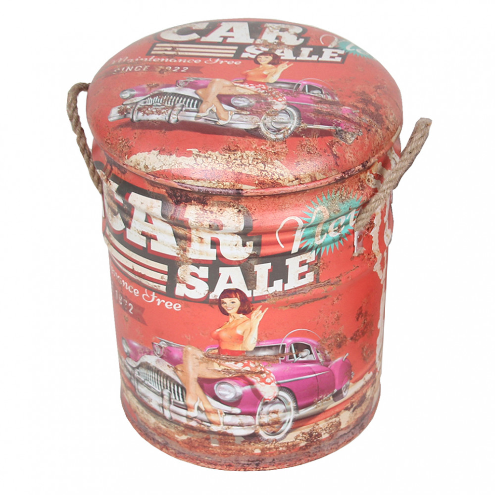 Pouf contenitore tondo, struttura in mdf e metallo, rivestimento pvc con stampa e coperchio imbottito Dimensioni: G.Ø30x38h/P.Ø27,5x31h