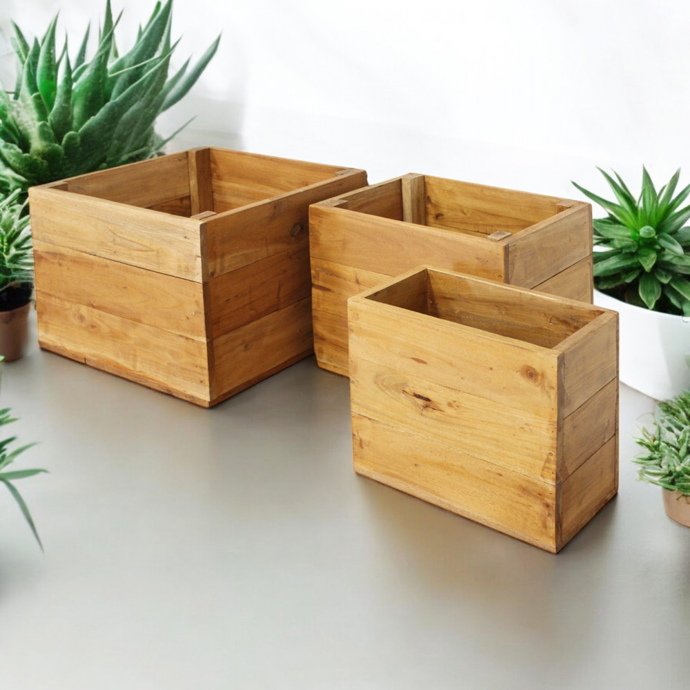 set di 3 cassette in legno di mogano Dimensioni: cm 38 l x 36 p x 29,5 h