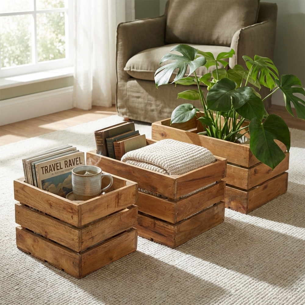 set di 3 cassette in legno di mogano Dimensioni: cm 50 l x 36 p x 28 h