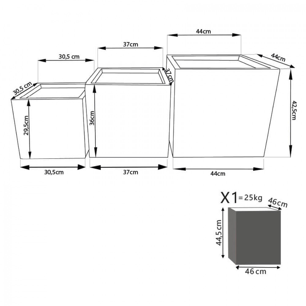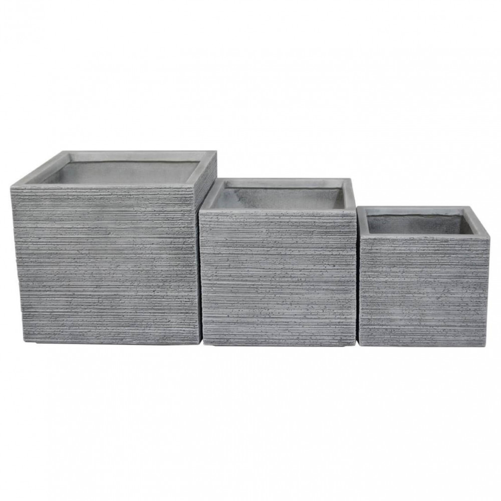 Set di 3 vasi in fibra di sintetica GRIGIA Dimensioni: G.44x44x42,5/M.37x37x36/P.30,5×30,5×29,5