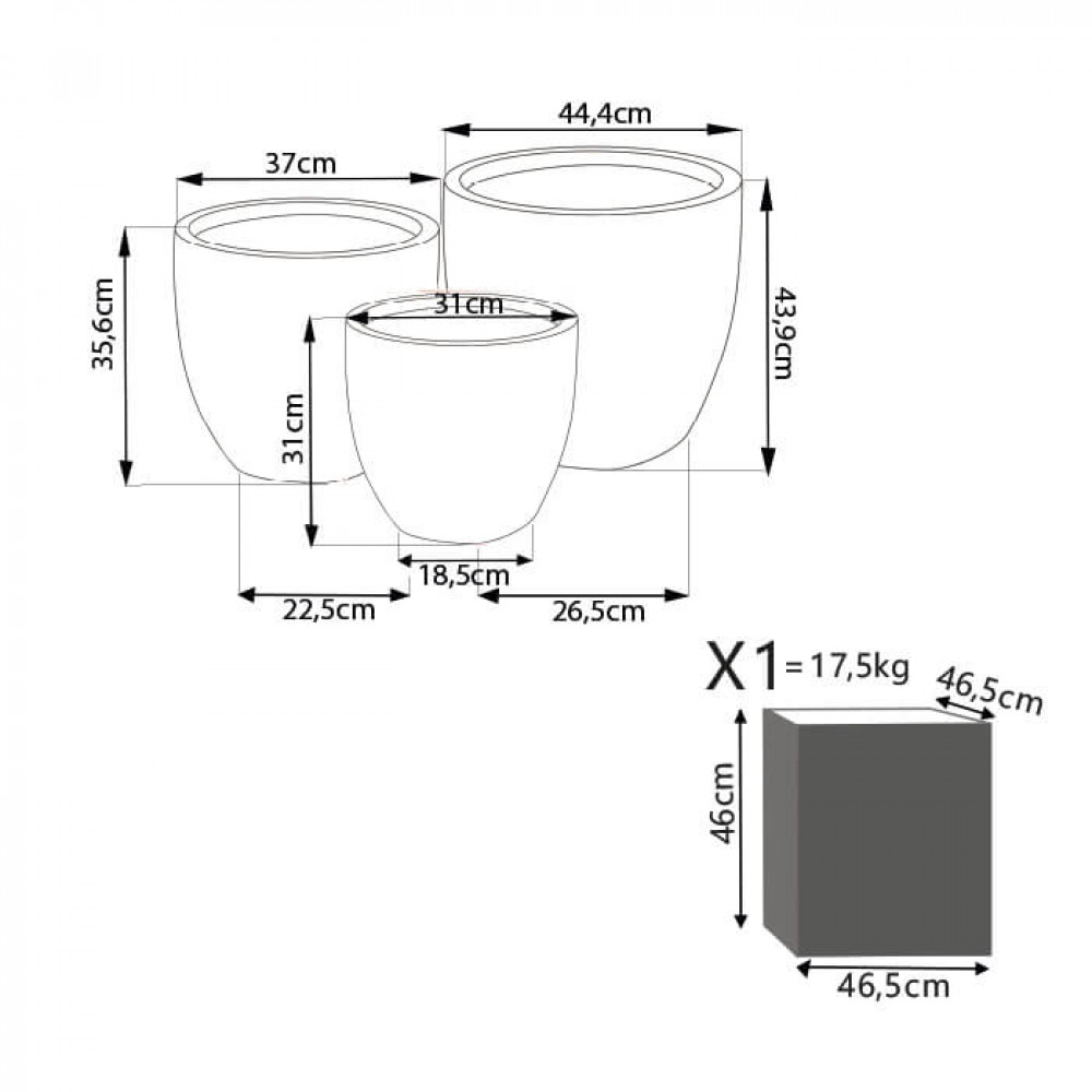 Set di 3 vasi in fibra di sintetica GRIGIA Dimensioni: G.44,5×44,5×44/M.37x37x35,5/P.31x31x31