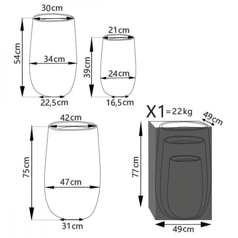Set di 3 vasi in fibra di sintetica color TAUPE, BEIGE o GRIGIO SCURO Dimensioni: G.47x47x75/M.34x34x54/P.24x24x39
