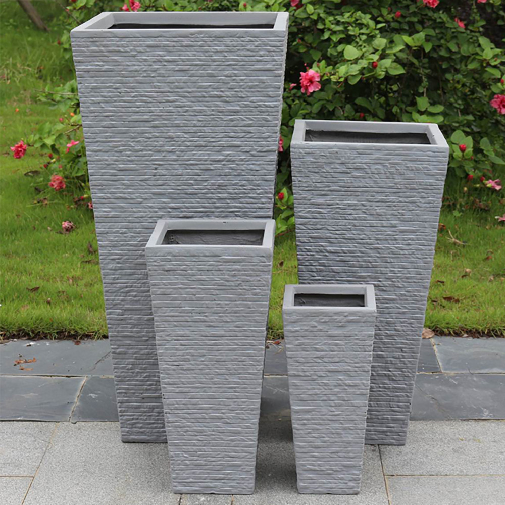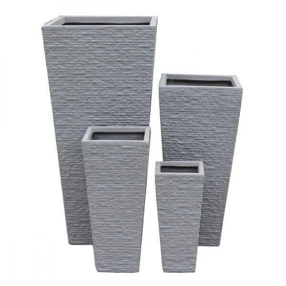 Set di 4 vasi in fibra di sintetica color GRIGIO CHIARO, GRIGIO SCURO o BEIGE Dimensioni: G.42x42x88/M.32x32x65,5/P.23,5×23,5×50,5/xS.18x18x38