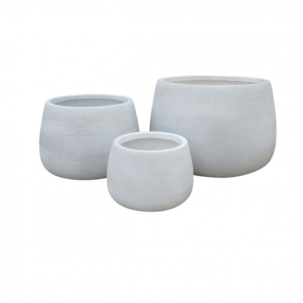 Set di 3 vasi in fibra di sintetica color TAUPE, BEIGE o GRIGIO SCURO Dimensioni: G.55x55x37/M.42x42x29/P.29x29x20
