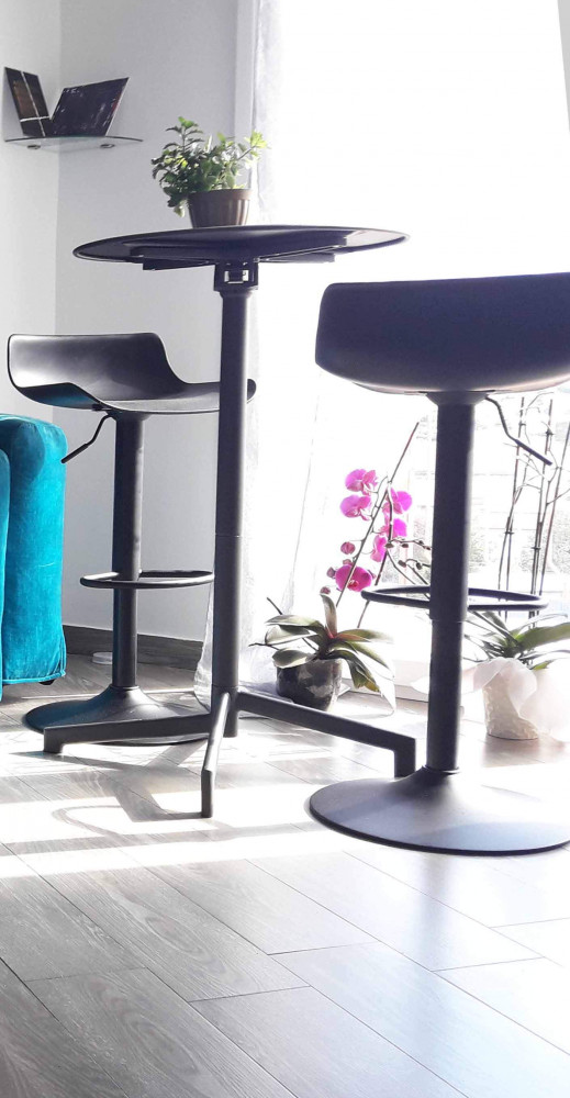 Sgabello NERO o BIANCO o GRIGIO in polipropilene, base in metallo del colore della seduta Dimensioni: cm 43 x 44 x 75/96 h