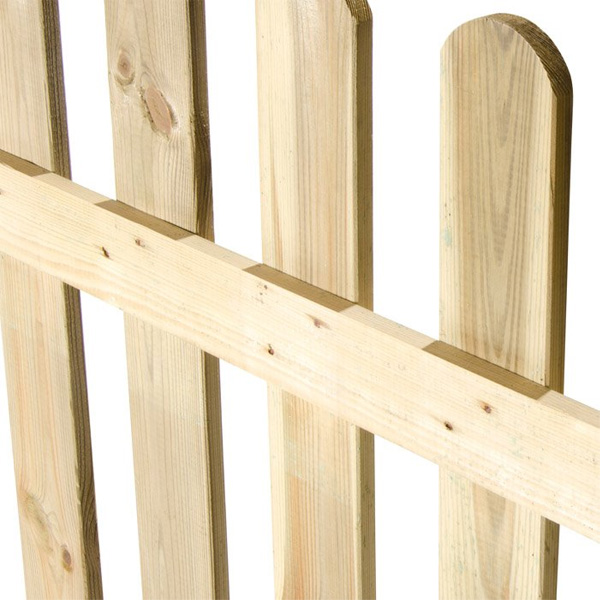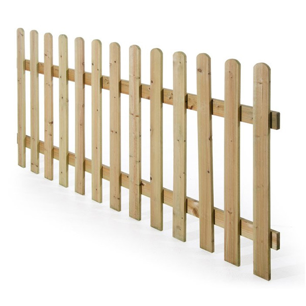 Staccionata in legno impregnato, suddivisa in moduli. Ogni modulo possiede le seguenti dimensioni 180×90 cm. Ogni modulo permette si recintare comodamente un area del giardino o orto. Facile da posizionare, eventualmente su ordinazione vi sono disponibili anche i supporti e pali, elementi decorativi e cancelletti.