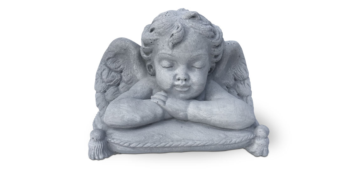 Statua Angelo pensatore antichizzata grigia da giardino in cemento. Questa statua da giardino rappresenta una tra le rappresentazioni dei soggetti più classici come putti e angioletti. Infatti rappresenta un tenero angioletto pensatore.