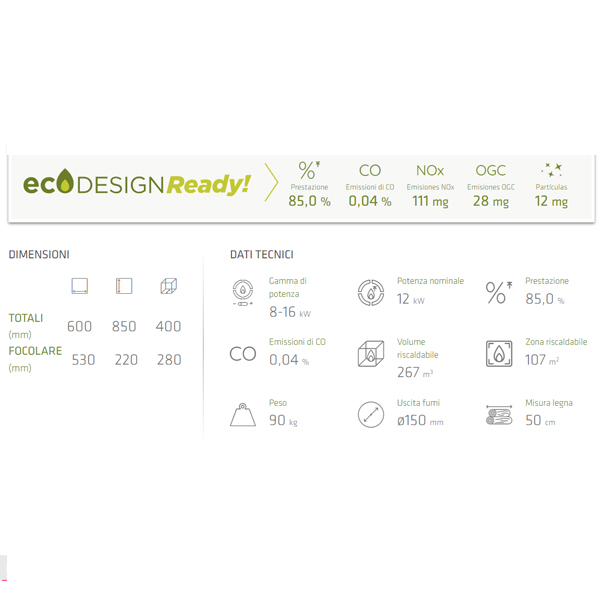 Infine Atlantic 603 genera un potere calorifero di 12kW ed è un grado di riscaldare circa 267 mc al massimo. In aggiunta questa linee di stufe a legna possiedo la certificazione ambientale a 4 stelle, richiesta a partire dal 1 Gennaio 2022 per installare questi prodotti secondo la normativa relativa all’ecodesign 2022. La stufa a legna Atlantic 603 inoltre gode anche dei vantaggi fiscali legati al Conto Termico 2.0, grazie al suo livello di efficienza termica superiore al 85%. Con questa stufa è inoltre possibile in alternativa godere degli incentivi relativi all’ecobonus.
