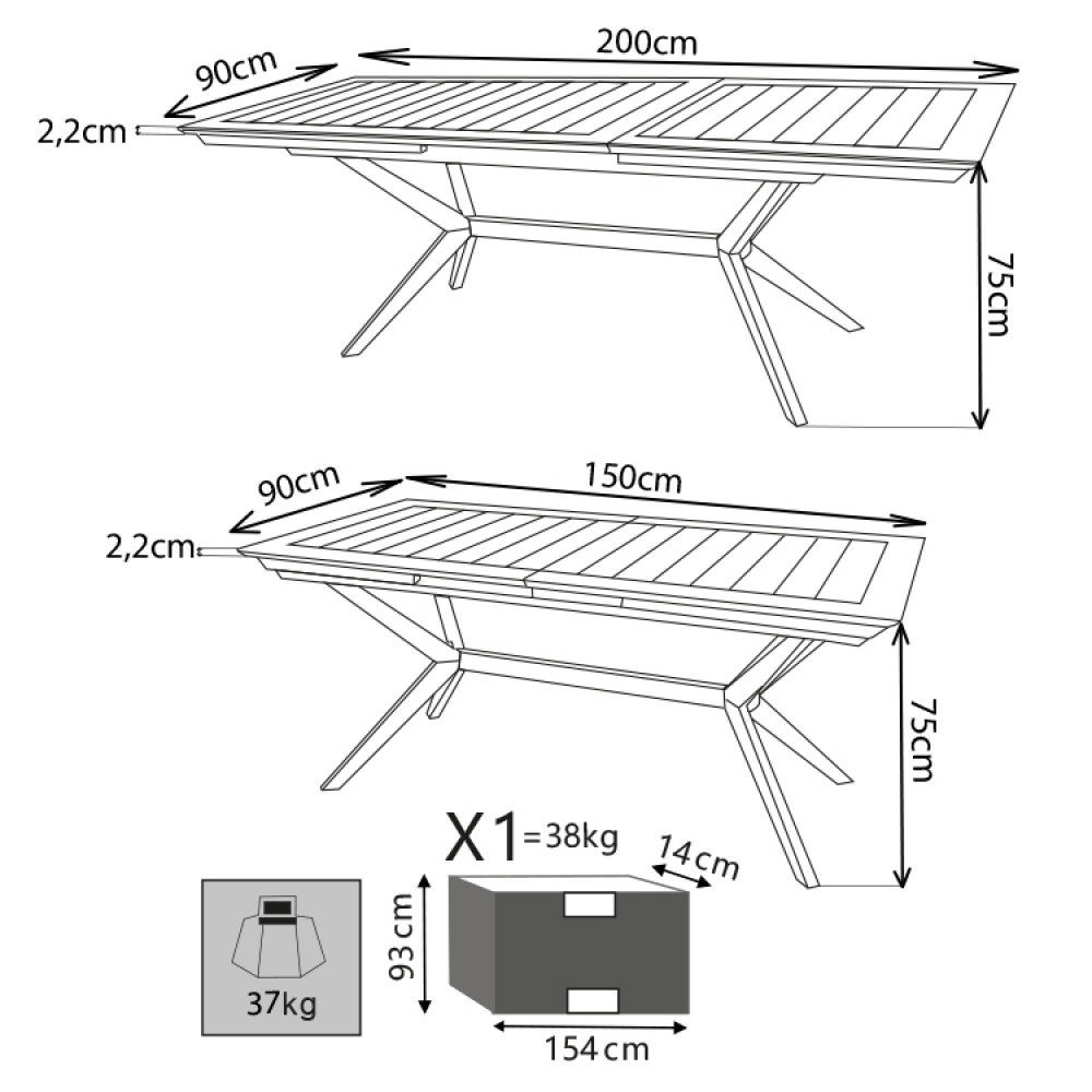 Questo complemento di Arredo Giardino misura 150 x 90 cm nella sua versione chiusa, mentre nella versione estesa raggiunge anche i 200 cm; per una altezza di 78 cm.