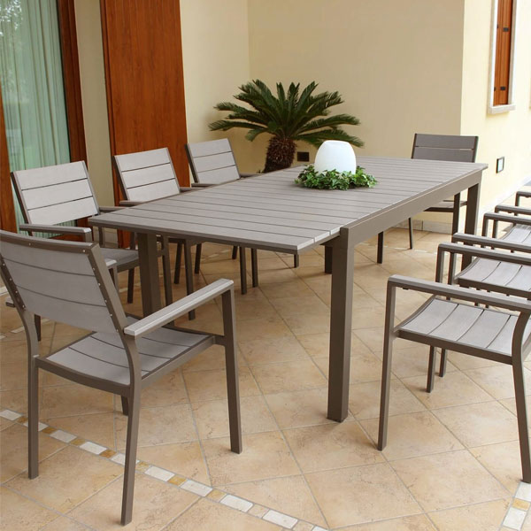 Inoltre , la struttura di questo tavolo allungabile da esterno è completamente in alluminio verniciato, dunque, leggero e pratico , inoltre il colore tauper ben si intona con tantissimi spazi, ambienti e altri complementi d’arredo, essendo comunque un colore abbastanza neutro.