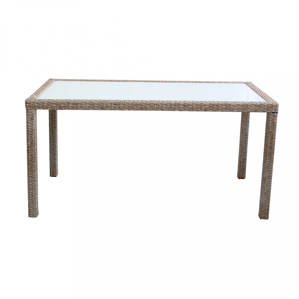 Struttura in metallo, wicker MARRONE, GRIGIO o BIANCO materiale UV protection piano in vetro spessore 5 mm Dimensioni: cm 150 x 90