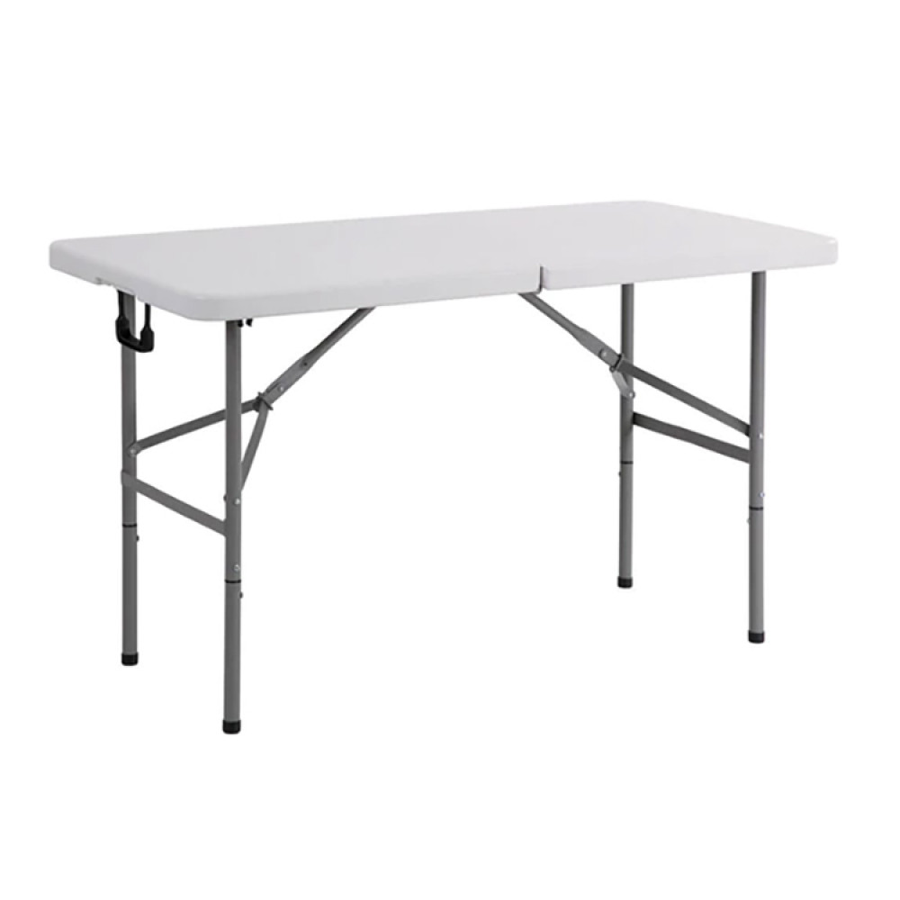 Struttura in metallo verniciato a polvere piano in ABS colore bianco Ø tubo verniciato grigio: 25 x 1,0 mm Dimensioni: cm 120 x 60 x 48 h