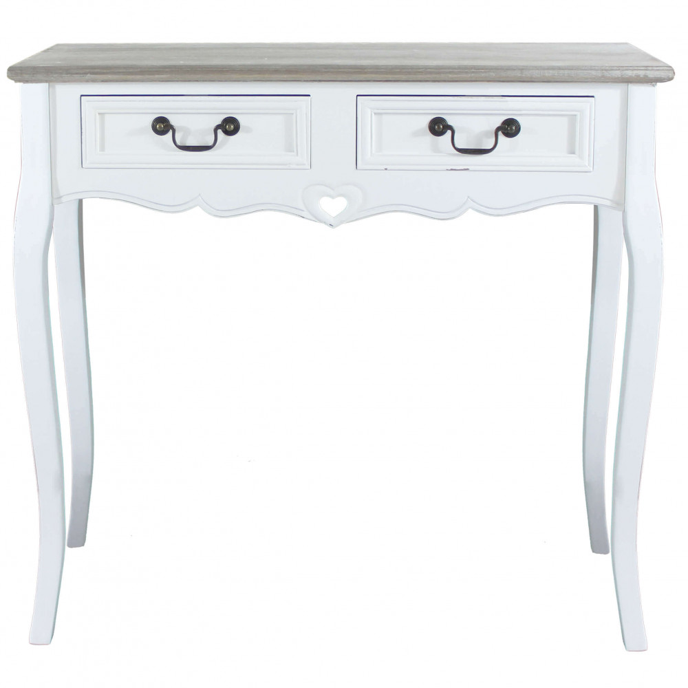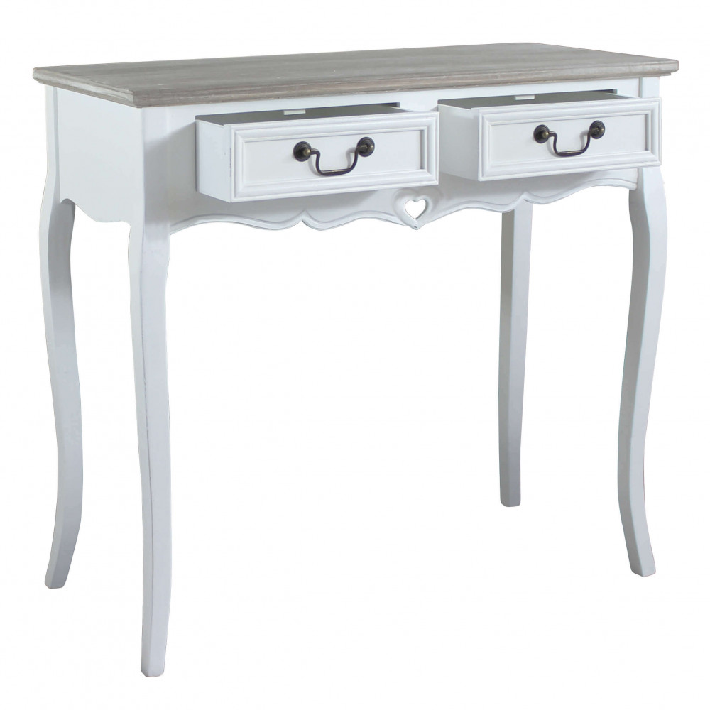 Struttura in legno di paulonia colore BIANCO e top colore NOCCIOLA 2 cassetti Dimensioni: cm 87 x 38 x 80 h