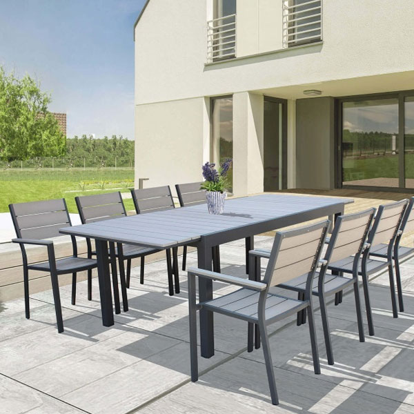 Soprattutto, questo tavolo da giardino, è pratico robusto e soprattutto LEGGERO. L’apertura a prolunga permette una facile estensione dello stesso, permettendo, ad ogni modo, un posto all’apice del tavolo oltre la posizione delle gambe. Certamente , la sua estensione è la caratteristica migliore. Infatti, aprendo il tavolo dal capolavoro si ottiene un numero superiori di posti a tavola senza avere le gambe di mezzo.