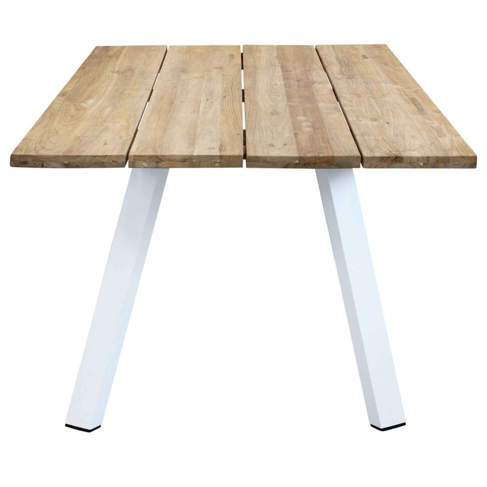 Struttura in alluminio verniciato bianco, piano del tavolo in teak riciclato 3 cm. Gambe 8 x 4 x 2 cm.