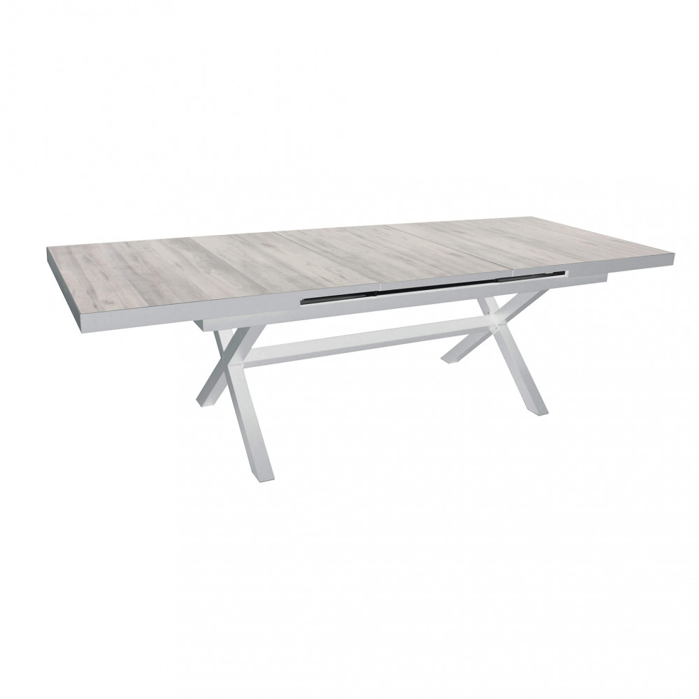 Struttura in allumino ANTRACITE o BIANCA piano del tavolo in ceramica effetto legno Dimensioni: cm 200/260 x 100 x 75 h