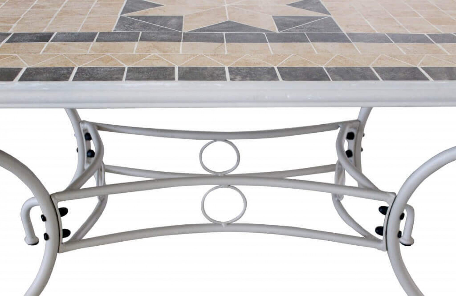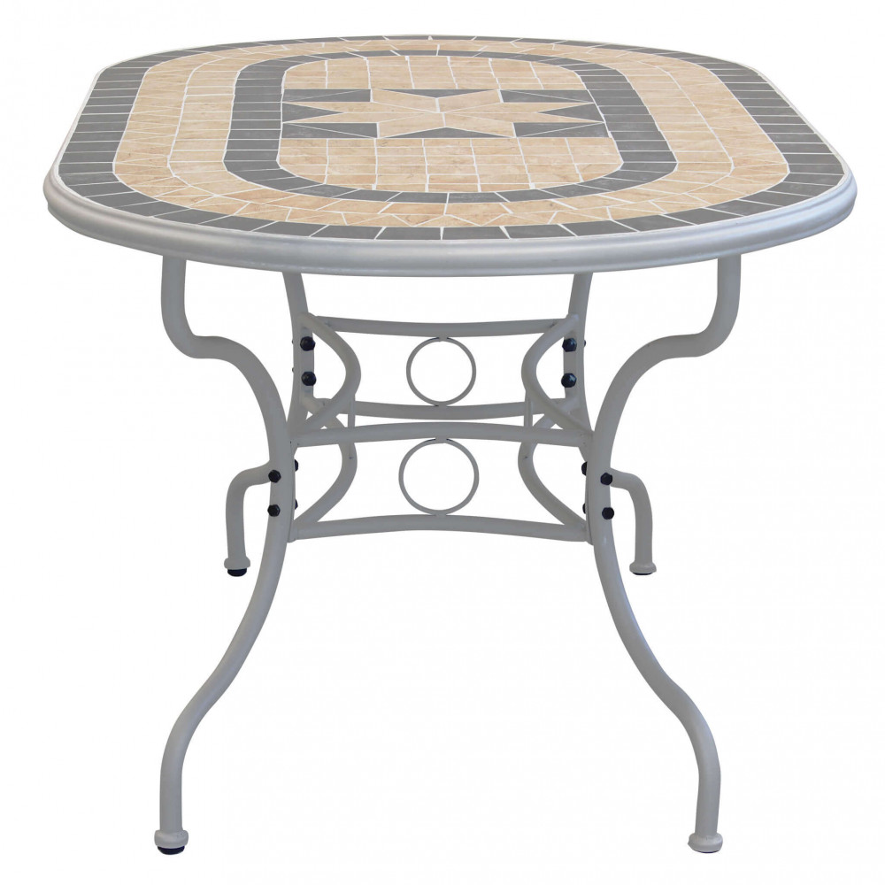 Piano ovale con mosaico MARRONE CHIARO e GRIGIO base in ferro verniciato a polvere Tortora Dimensioni: cm 160 x 90 x 74 h