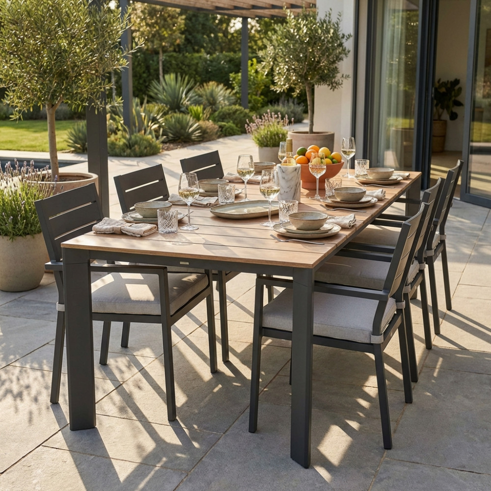 Struttura in alluminio verniciato BIANCO o TAUPE o ANTRACITE piano con doghe effetto legno Dimensioni: cm 215/280 x 100 x 75,5 h