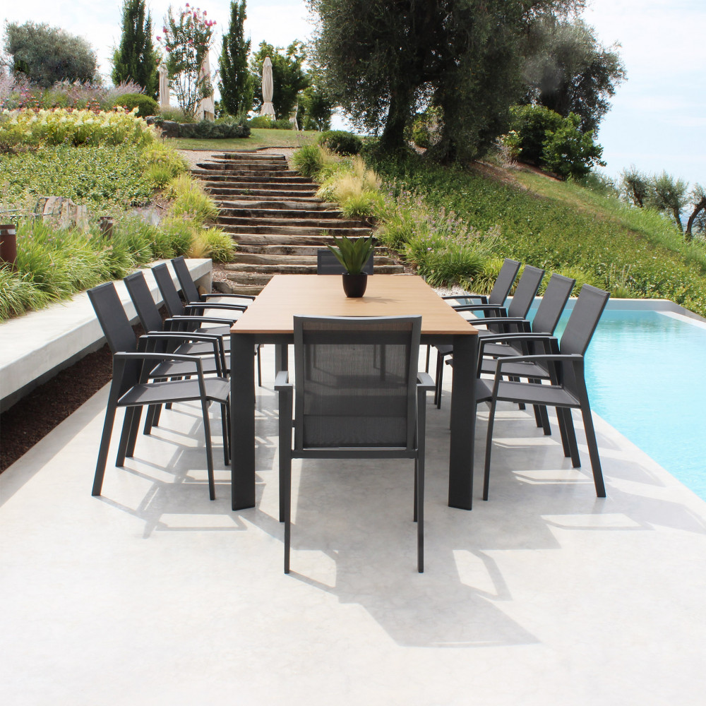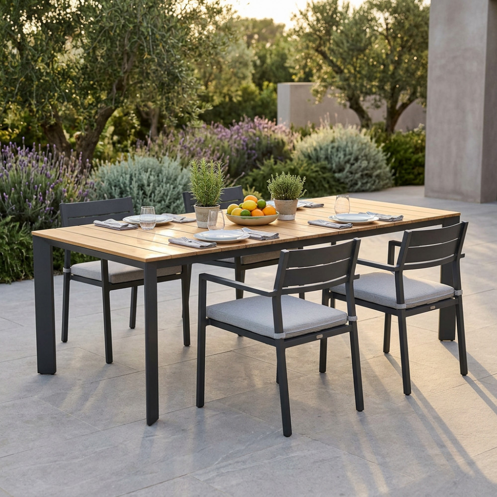 struttura in alluminio verniciato bianco o antracite piano in teak Dimensioni: cm 211/276 l x 100 p x 75 h