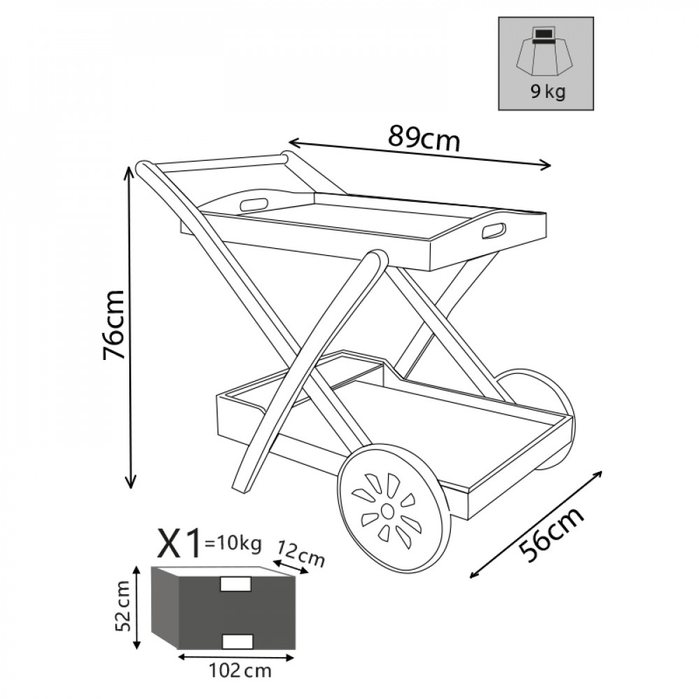 Legno di Acacia massiccio Dimensioni: cm 87 x 56 x 76 h