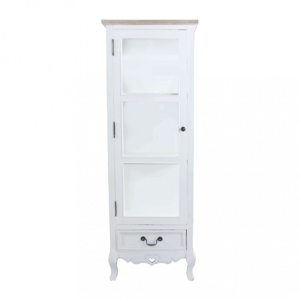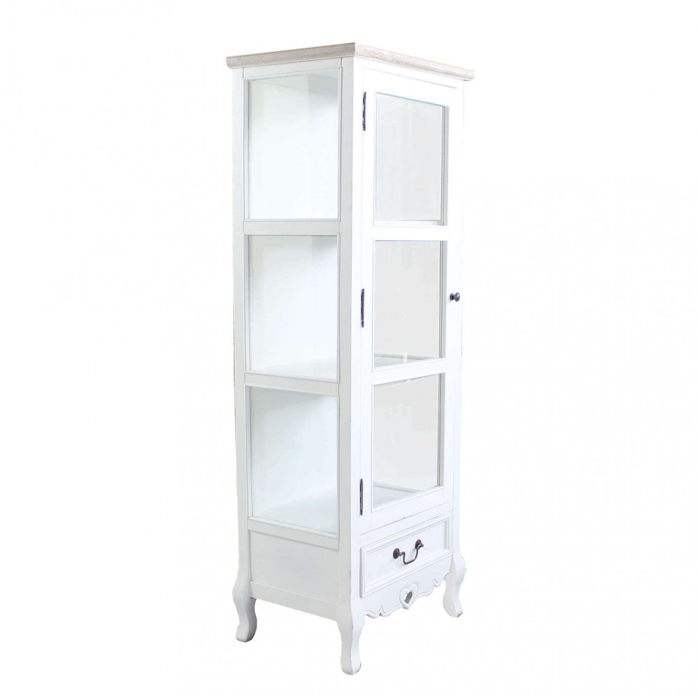 Struttura in legno di paulonia colore BIANCO e top colore NOCCIOLA 1 cassetto, 1 vetrina con 3 ripiani Dimensioni: cm 50 x 37 x 141 h